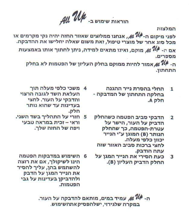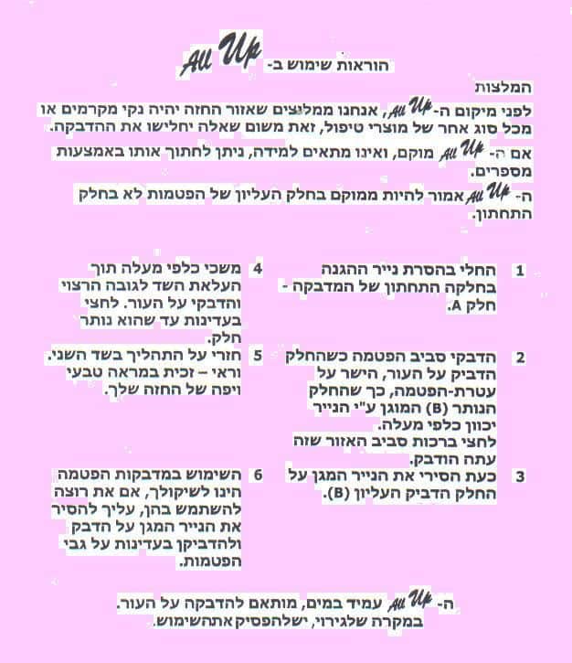 * מדבקות ALL UP מתאימות לחזה בגודל A,B,C