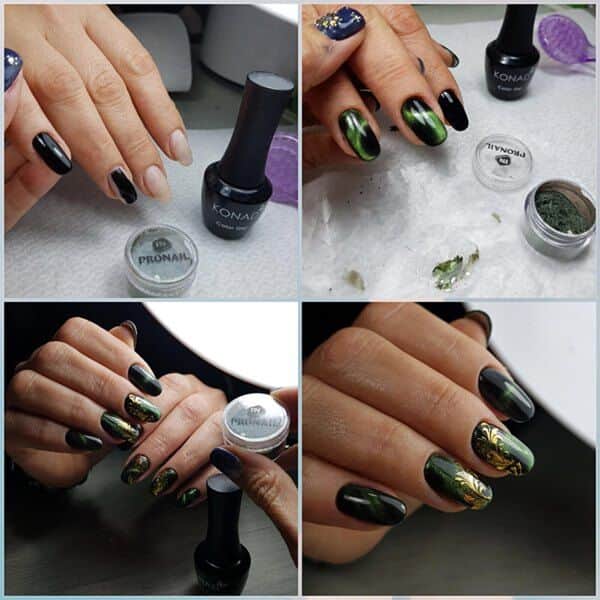2. מריחה נוספת דקה של לק ג'ל שחור וייבוש במנורה.