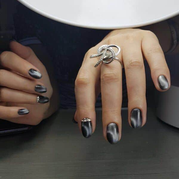5. יש למרוח שיכבה של טופ ג'ל ולאחר מכן להחזיק את המגנט מעל הציפורן במרחק