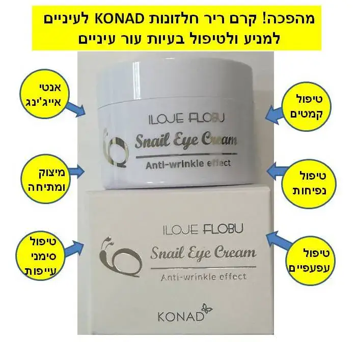 קרם ריר חלזונות לעיניים של KONAD הקוריאני המקורי הידוע בתכשירי קוסמטיקה איכותיים