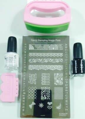 konad fancy stamping set 3 ערכת קונאד פנסי 3 הכוללת: חותמת גדולה ומיוחדת+שפכטל+ פלטת דיסקים + 2 לקים